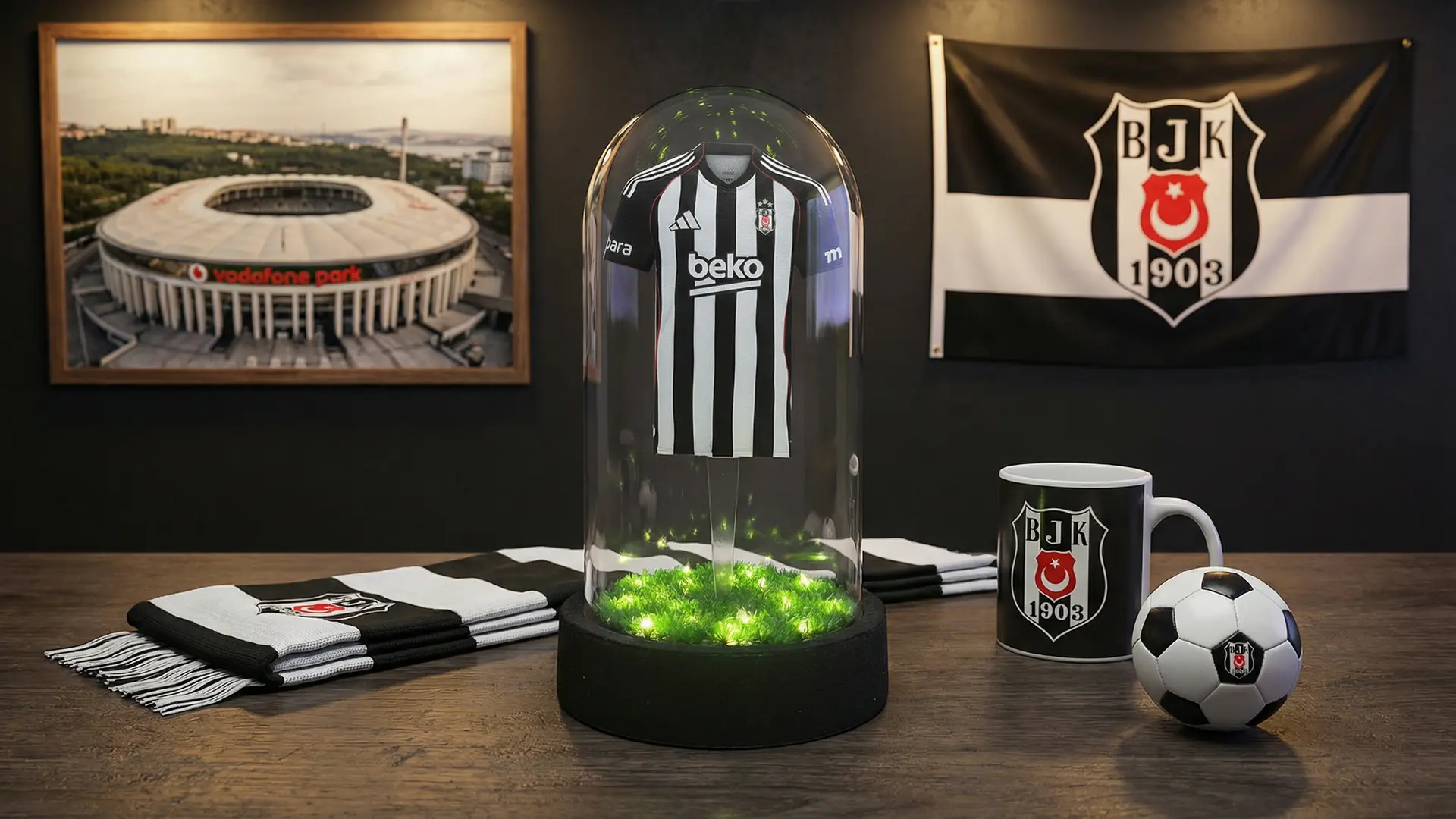 Tüpraş Stadyumu'nun heyecanını ve Beşiktaş'ın köklü tarihini yansıtan bu tasarımlar, her detayında zarafeti barındırır. El yapımı işçilik ve kaliteli malzemelerle, taraftarlar için unutulmaz bir hâtıra sunar.
