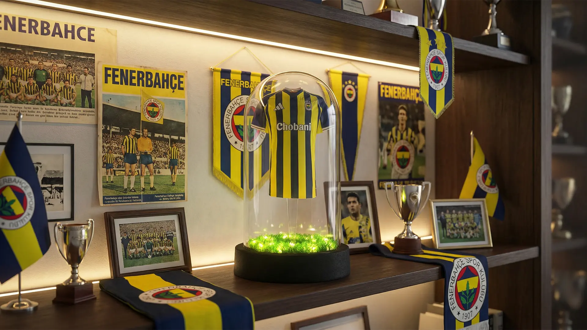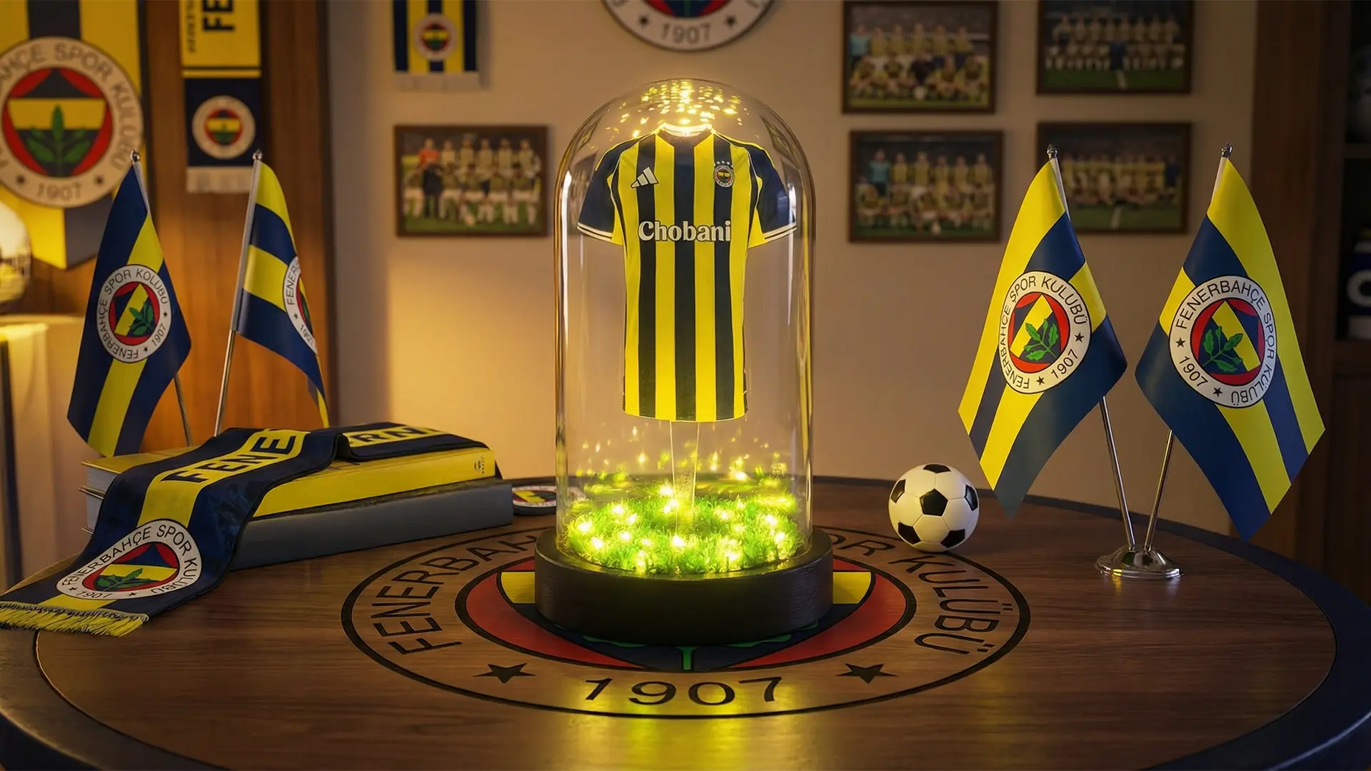 Sarı-lacivert sevdasını en şık şekilde sergilemeniz için tasarlanan bu koleksiyon, cam fanus içinde tozsuz ve güvenli bir şekilde yıllarca mirasını korur. Kurumsal hediye veya kişisel koleksiyon için idealdir.